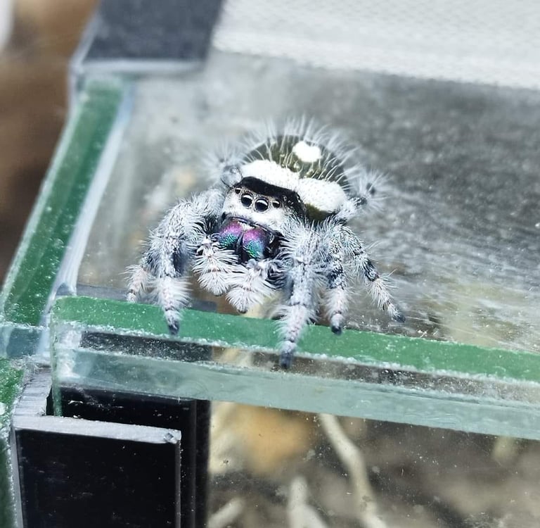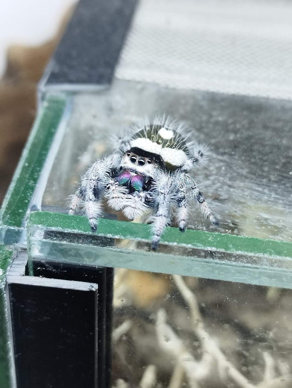 Stade de vie : La croissance de votre Phidippus s'effectuera en suivant un phénomène que l'on appelle la mue ou l'exuviation. Les jeunes Phidippus augmenteront donc progressivement de taille et atteindront le stade adulte après des mues successives. Entre 7 et 8 pour un mâle et 9 et 10 pour les femelles. Ensuite La phidippus est adulte, ce qui signifie qu'elle est mature sexuellement et donc désormais apte à se reproduire.